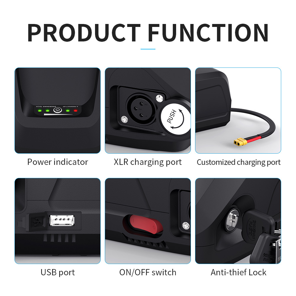 Tehokas ja luotettava UNITPACKPOWER S039-3 -akku tarjoaa 36V 20Ah -kapasiteetin 36V sähköpyöriin. Kestävä kotelo, sisäänrakennettu BMS-suojapiiri ja USB-portti tekevät siitä käytännöllisen vaihtoehdon päivittäiseen ajoon ja pidemmille matkoille.
