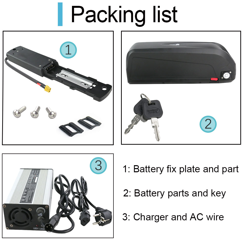 5. Ergonominen ja laajasti yhteensopiva: Akussa on kiinnitysteline, joka sopii useimpiin runkoihin, joissa on juomapullon kiinnitysreiät. Yhteensopiva 52V sähköpyörien, polkupyörien, maastopyörien ja muiden vastaavien kanssa.