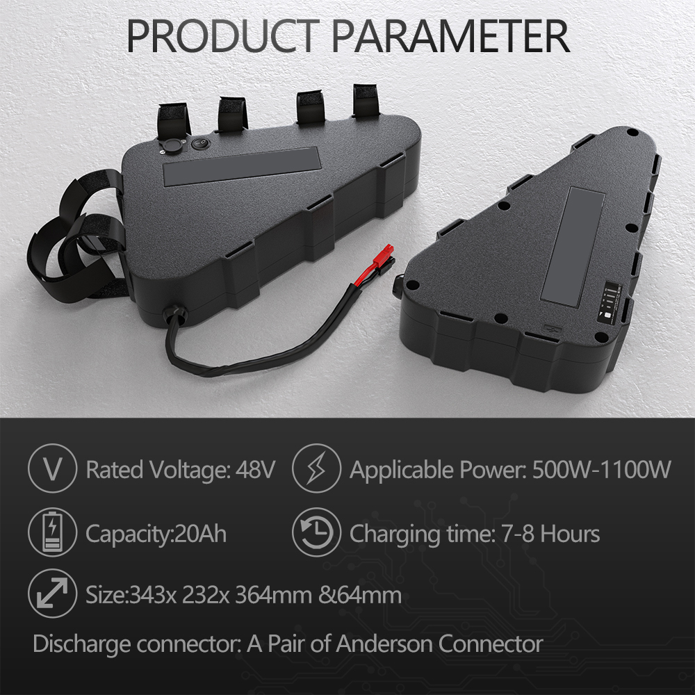 UNITPACKPOWER U004 48V 20Ah sähköpyörän kolmionmuotoinen akku 50A suojauslauta 1100W yhteensopiva