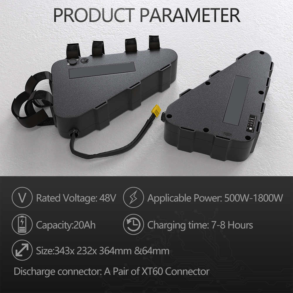 UNITPACKPOWER U004 48V 24Ah kolmionmuotoinen sähköpyörän akku 40A BMS suojalevyllä tukee jopa 1800W moottoria