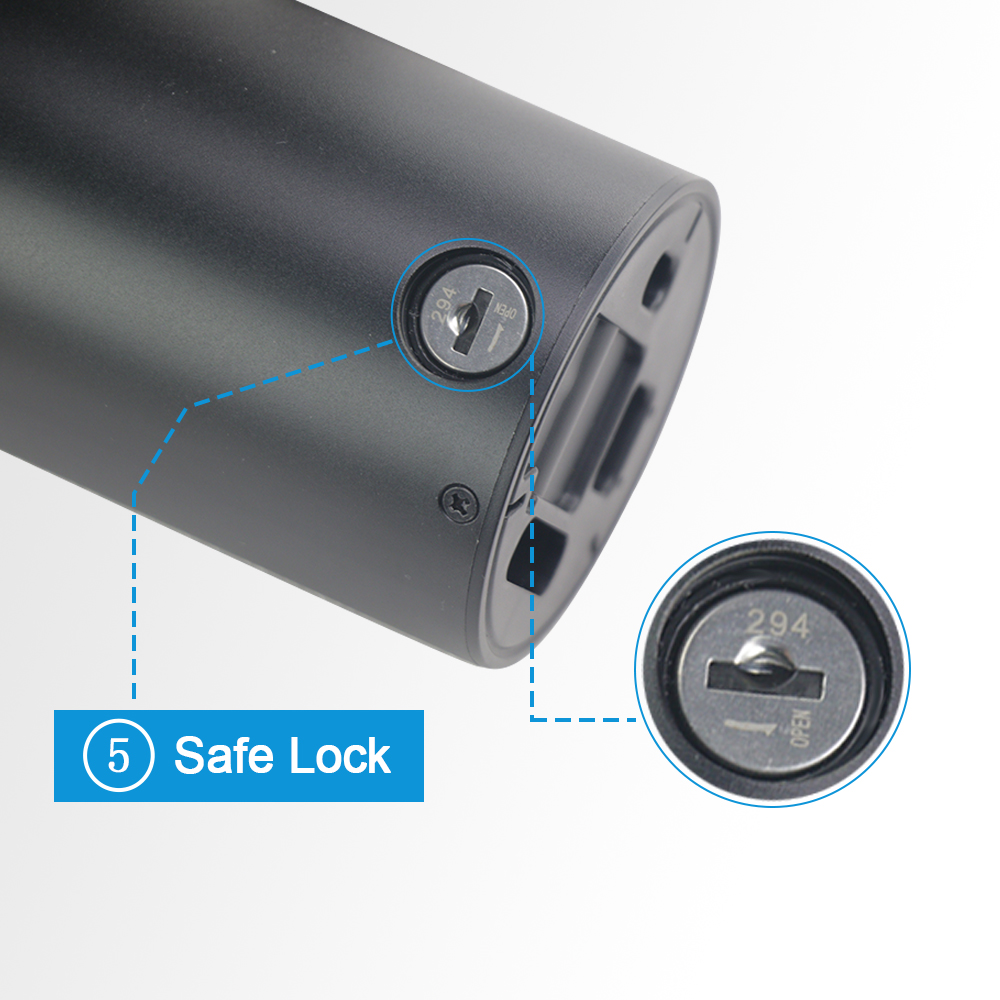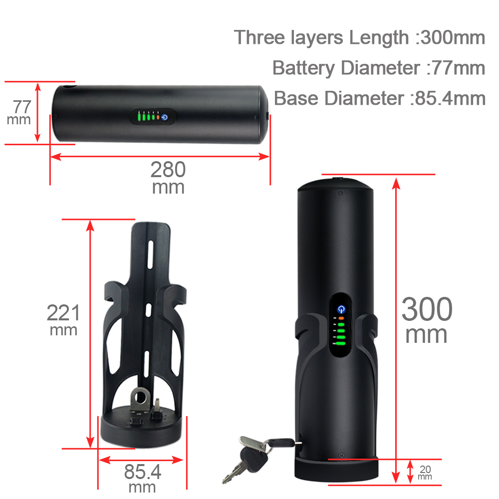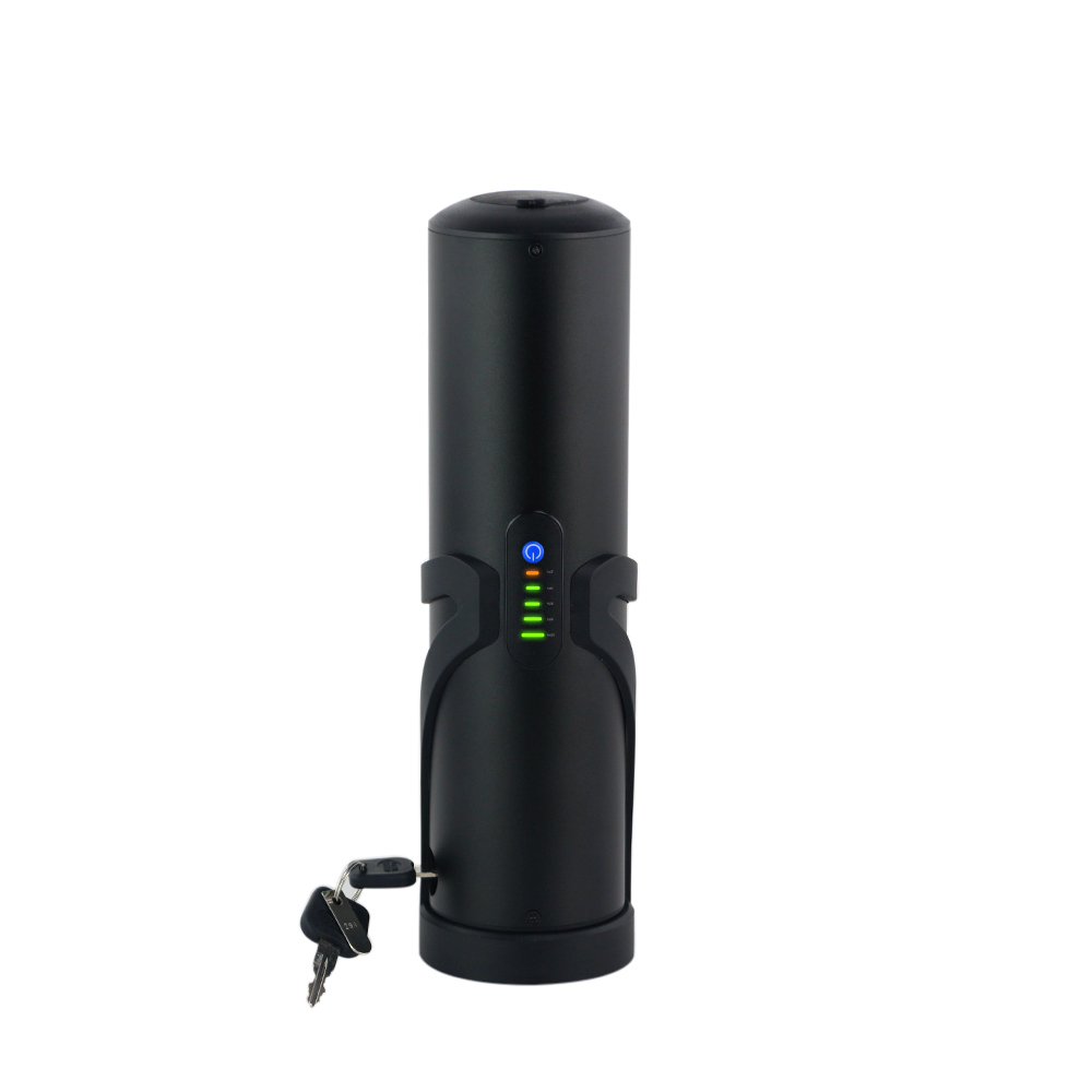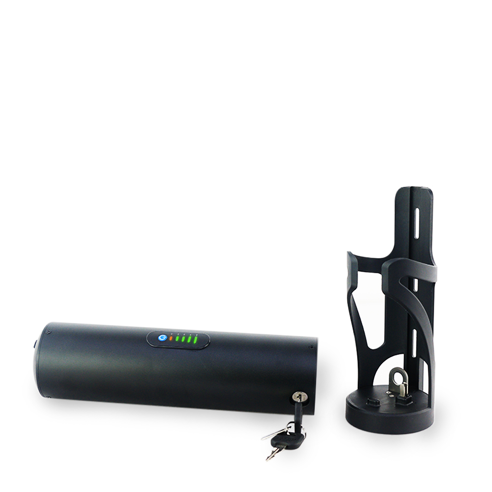1. Uusi pieni ja kevyt juomapullon mallinen rakenne, mukana teline, joka sopii useimpiin sähköpolkupyöriin.