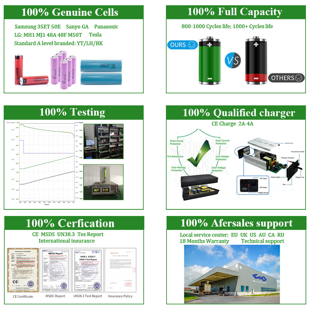 3. Luotettavat ja kestävät 18650-merkkikennot 3500mAh kapasiteetilla pitkää käyttöikää varten.