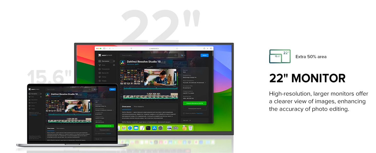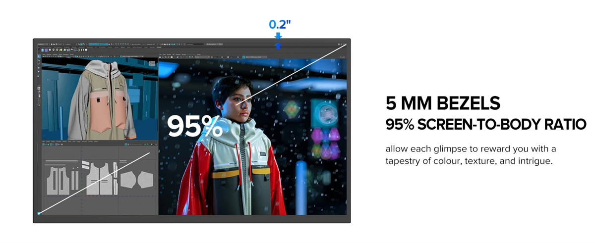 1. 22-tuumainen suuri näyttö: Laaja katselupinta 2K-tarkkuudella, sopii tuottavuuteen ja viihteeseen.