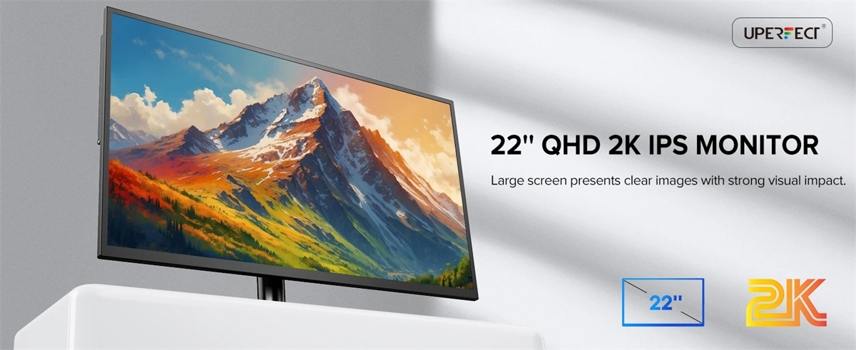 UPERFECT 22-tuumainen kannettava 2K QHD -näyttö tarjoaa laajan katselukulman, tarkan värintoiston ja kevyen rakenteen työskentelyyn, opiskeluun ja viihteeseen. Sisäänrakennetut jalustat ja VESA-kiinnitys helpottavat sijoittelua pöydällä tai varrella, ja monipuoliset liitännät tekevät käytöstä vaivatonta eri laitteilla.