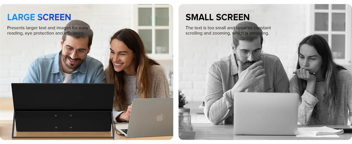 4. Liikkuvaan käyttöön: Kätevä lisänäyttö ammattilaisille kannettaville tietokoneille ja puhelimille.