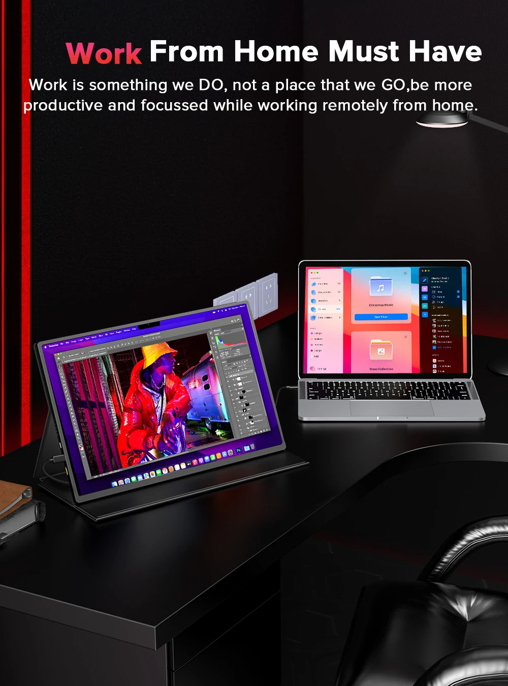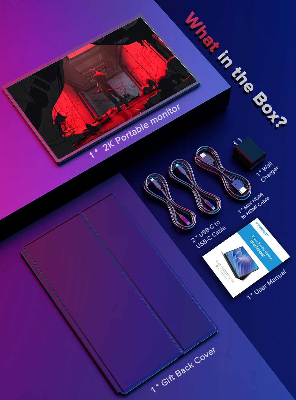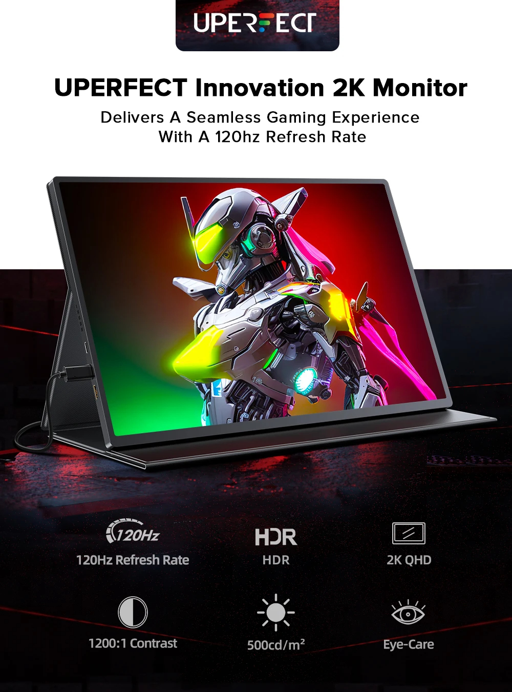 UPERFECT 16 Inch IPS -näyttö 2K Ultra HD 2560*1600 -tarkkuudella ja HDR-tuella, IPS-näyttö 100% sRGB -väriavaruudella, 1200:1 kontrastisuhteella ja 178° katselukulmalla tuottaa kirkkaammat, tarkemmat ja luonnollisemmat värit.