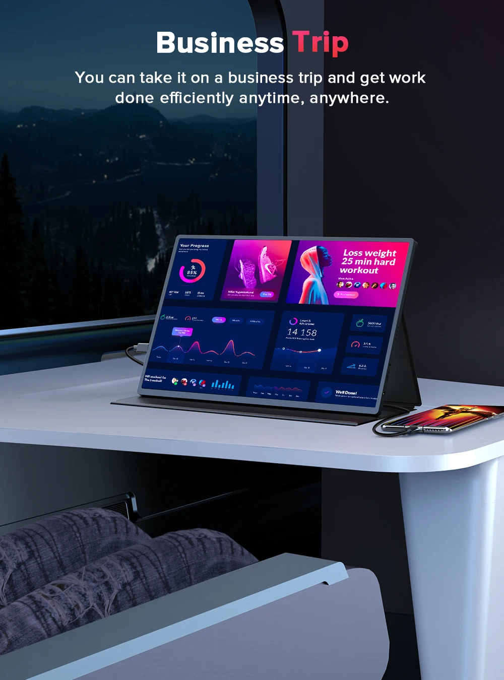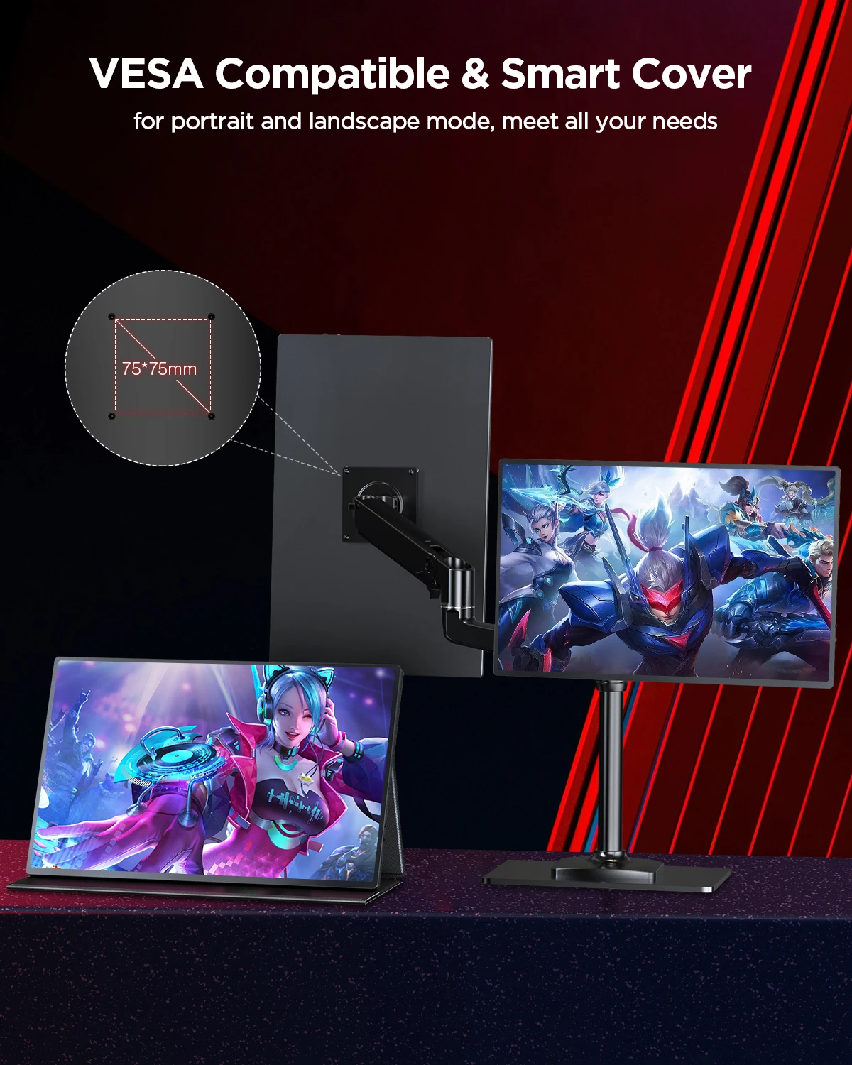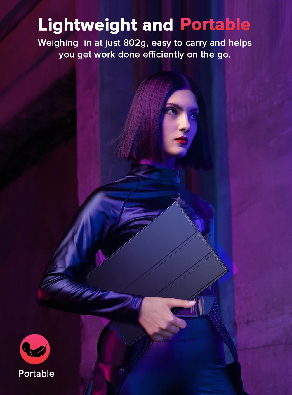 Sisäänrakennettu Mini HD -portti, jonka pistotesti yli 5000 kertaa. Suojakansi PU-nahkapinnalla ja pehmeällä vuorilla suojaa näyttöä. Takana VESA (75x75@M4) -kiinnitys seinä- tai pöytätelineelle.