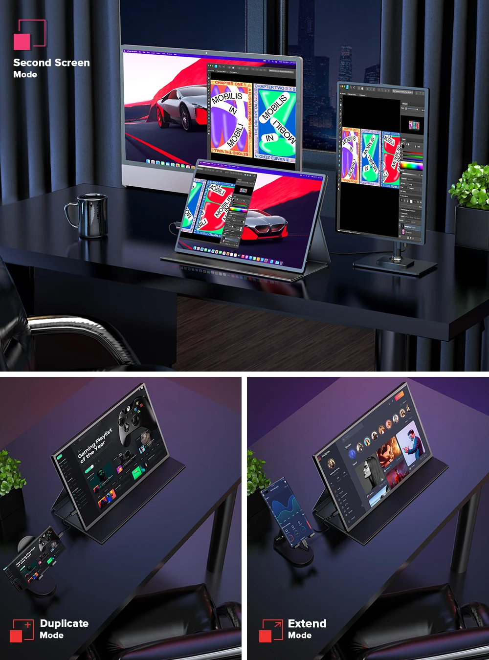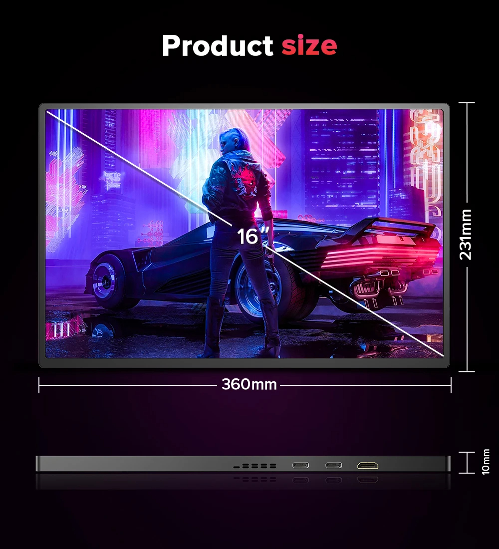 UPERFECT 16-tuumainen IPS-näyttö tarjoaa 2K Ultra HD 2560*1600 -tarkkuuden ja HDR-tuen. 100% sRGB -väriavaruus, 1200:1 kontrastisuhde ja 178° katselukulma tuottavat kirkkaat, luonnolliset värit ja miellyttävän katselukokemuksen. 8-bit (8bit+FRC) -värisyvyys tekee värisiirtymistä tasaisempia ja yksityiskohdista tarkempia. 500 nitin kirkkaus, 3-sivuinen kapea kehys ja mattapintainen, heijastuksia vähentävä näyttö sopivat sekä työhön että viihteeseen. Sisältää Mini HD -portin, suojakannen ja VESA (75x75@M4) -kiinnityksen.