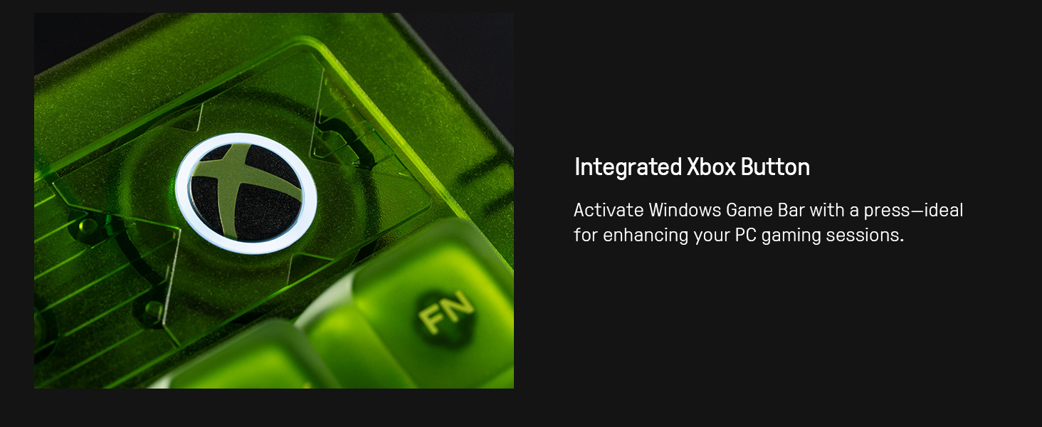 1. Xbox-henkinen muotoilu: Retrotyyli ja nykyaikainen toiminnallisuus, inspiroituna alkuperäisen Xbox-konsolin Transparent Green Edition -versiosta.