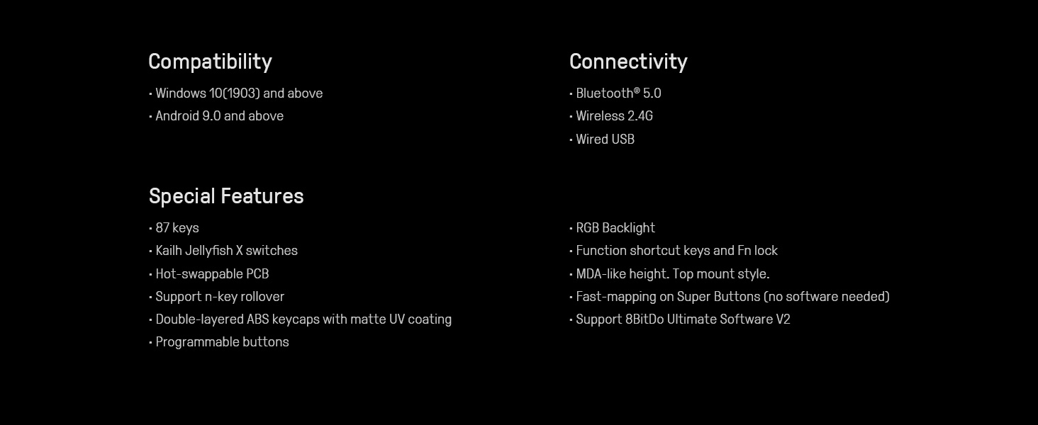 Uusi 8BitDo Retro 87X mekaaninen 87-näppäin RGB vaihdettavat kytkimet langaton näppäimistö