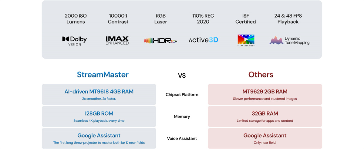 Valerion StreamMaster Plus 2 kotiteatteriprojektori 4K RGB-kolmilaser 110% REC 2020 10000:1 kontrasti Dolby Vision IMAX