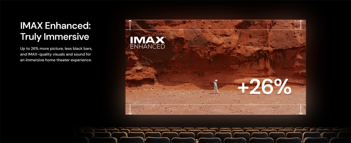 Ammattilaistason elokuvastandardit: Dolby Vision, IMAX Enhanced, HDR1O+, Filmmaker-tila, 24 FPS, 48 FPS