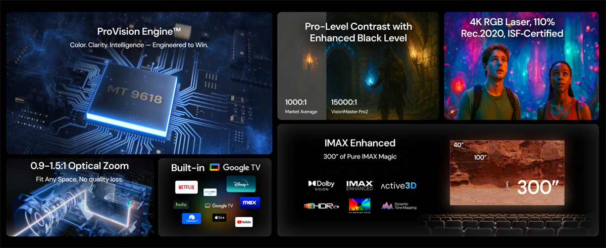 3. Uppouttavat kuvasuhteet: IMAX Enhanced -tuki, kuvakoko jopa 300''.