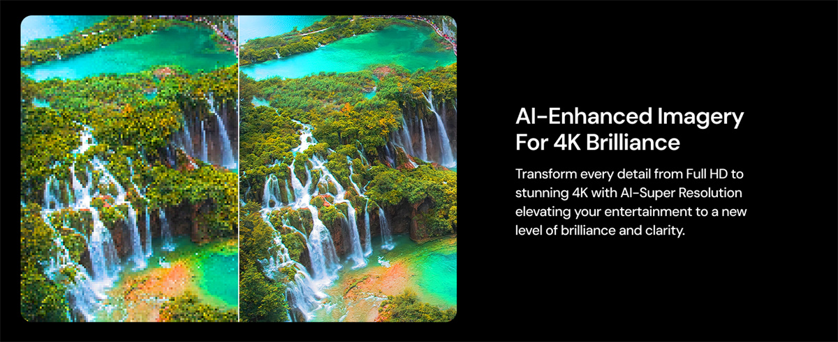Tarkkuus: 3840×2160 (4K UHD), AI-superskaalaus
