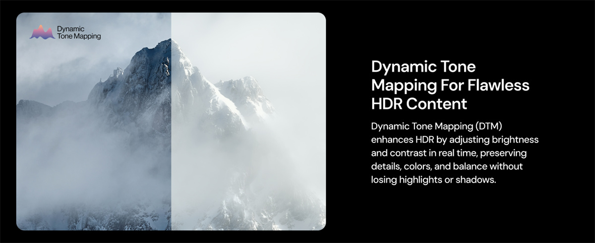 5. Dynaaminen sävytoisto: HDR10+ ja AI-parannettu 4K-tarkkuus.