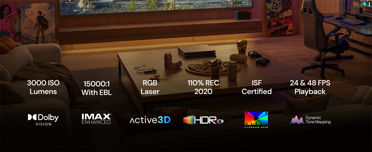 - RGB-laser, 110% Rec.2020 -väriavaruus ja ISF-sertifiointi luonnollisille väreille