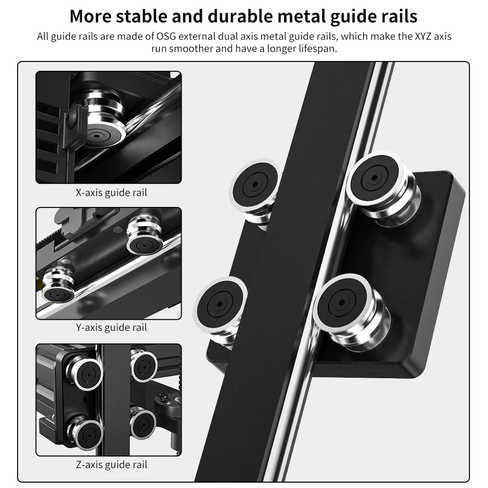 2. Korkea tarkkuus: X/Y:0.00625 mm ja Z:0.00125 mm tukevat erittäin tarkkaa tulostusta.