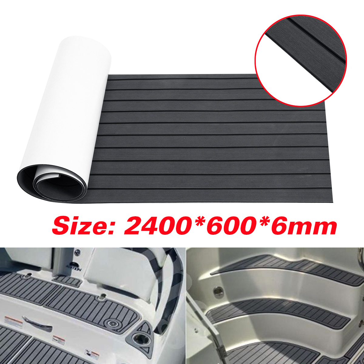 Marine Flooring Faux Teak EVA Foam Boat Decking Sheet Grey+Black 2400x600x6mmTekniset tiedot: