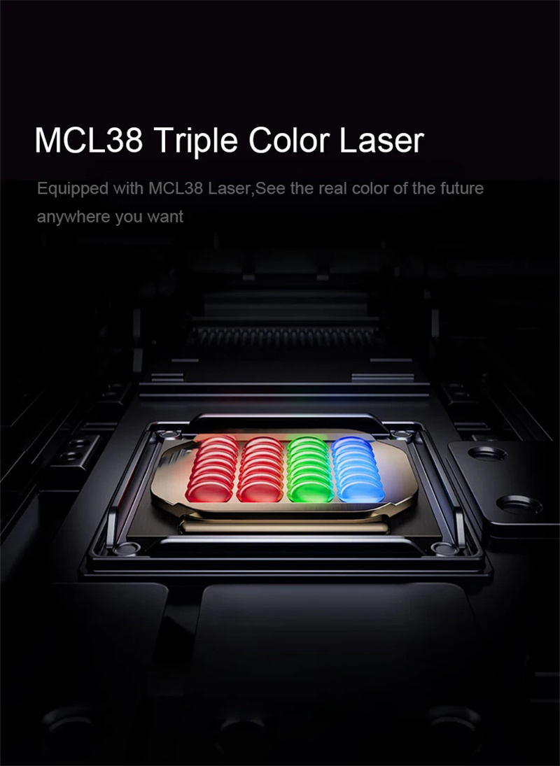 2. MCL38 kolmivärinen laser -tekniikka: parannettu väritarkkuus ja -eloisuus luonnolliseen kuvaan.