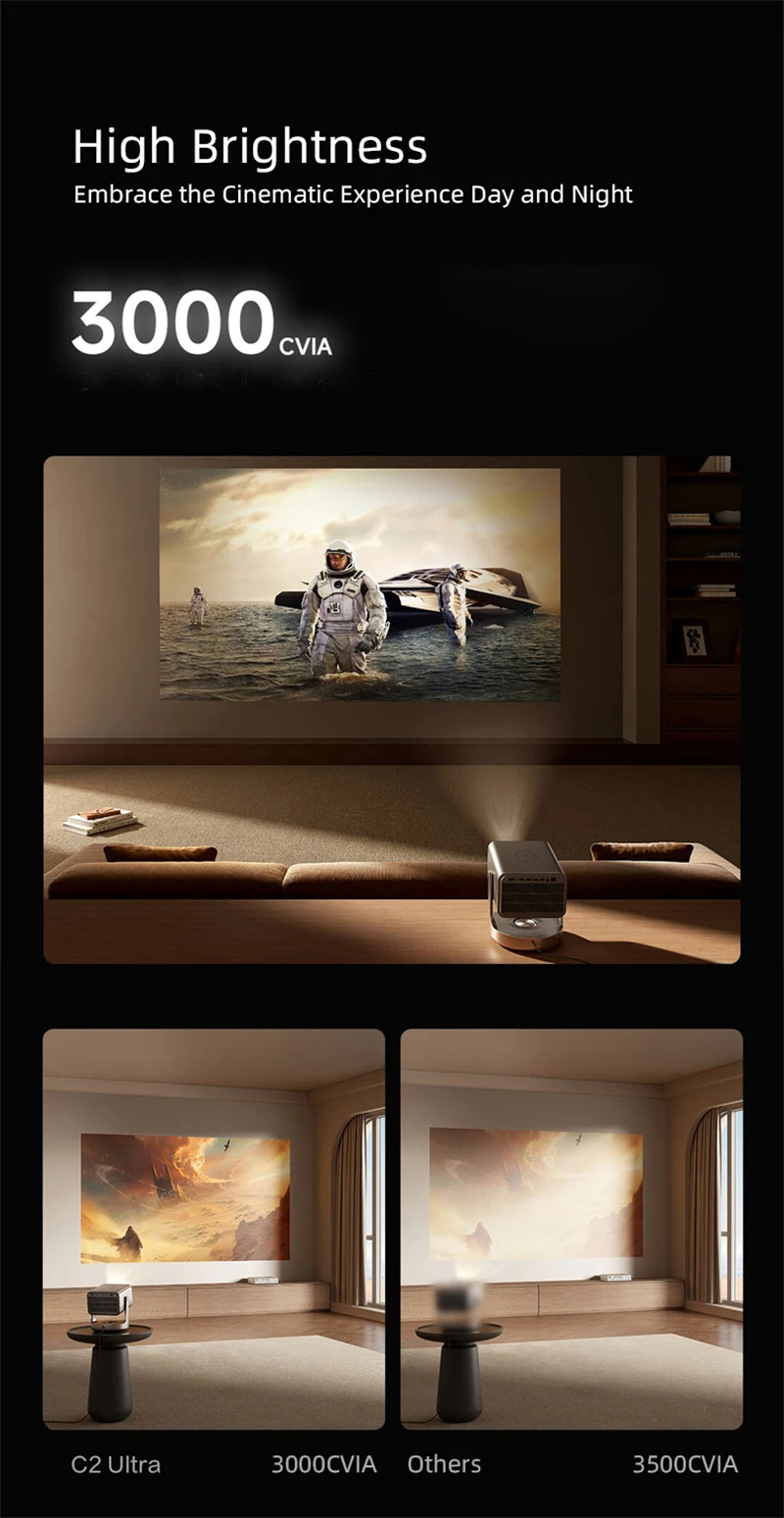 1. Erittäin hyvä kirkkaus: 3000 CVIA lumenia tuottaa selkeät ja eloisat kuvat vaihtelevissa valaistusolosuhteissa.