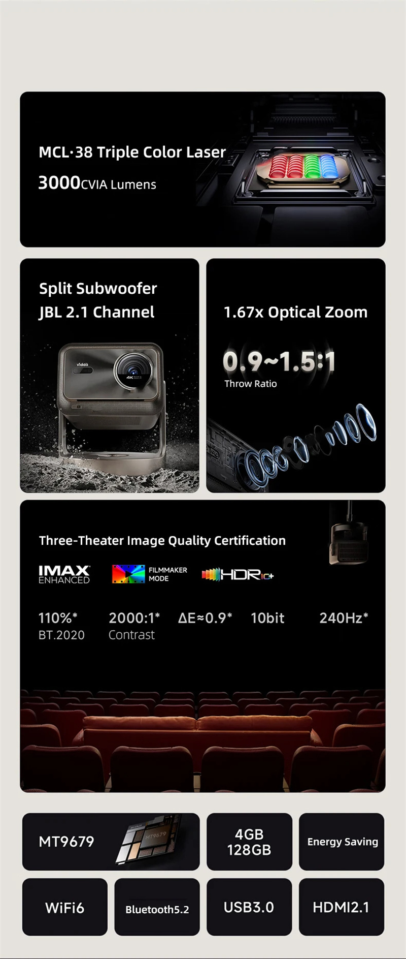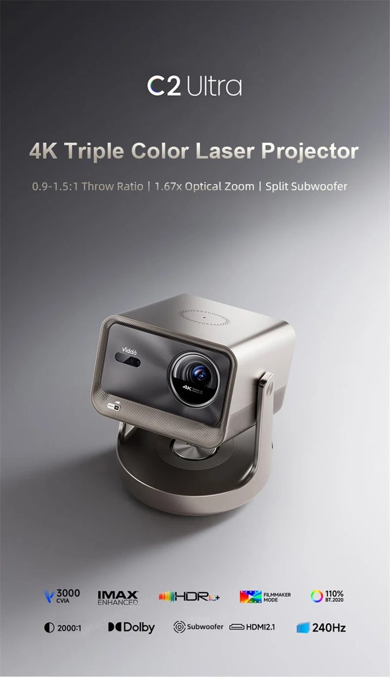 Vidda C2 Ultra kolmoisvärilaseri 4K-projektori 4G+128G-muisti HDR10+ 3000 CVIA-lumenia JBL 2.1-kanava