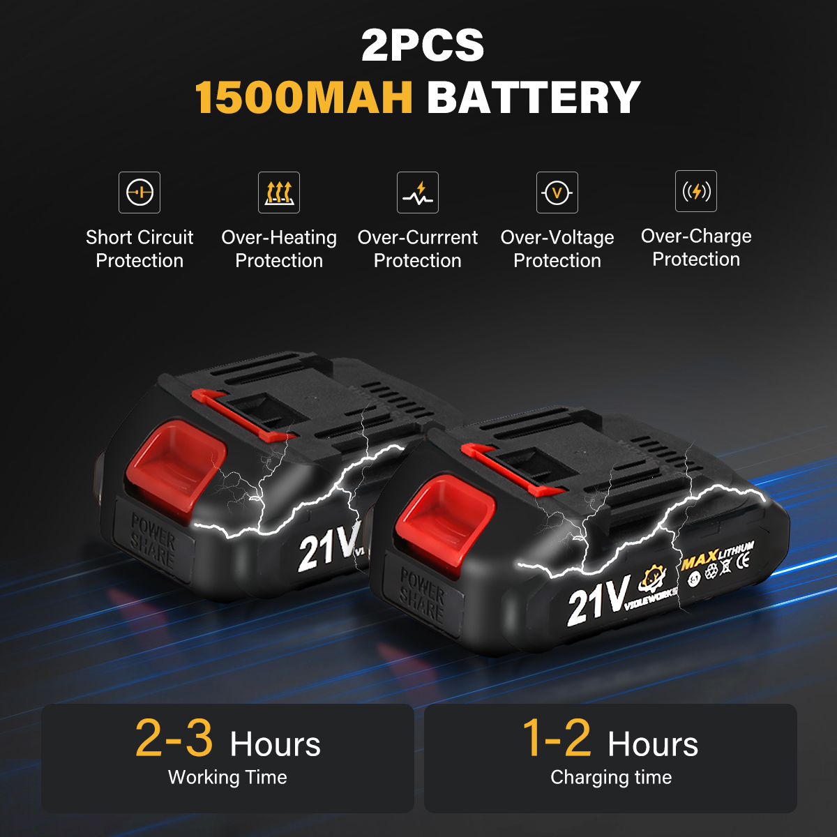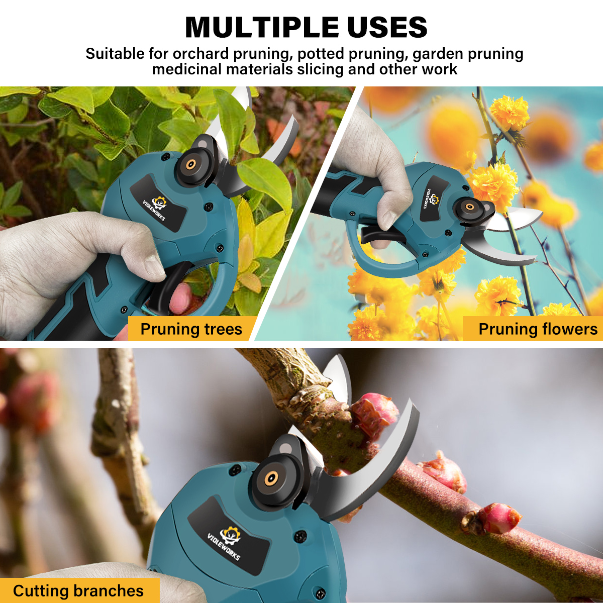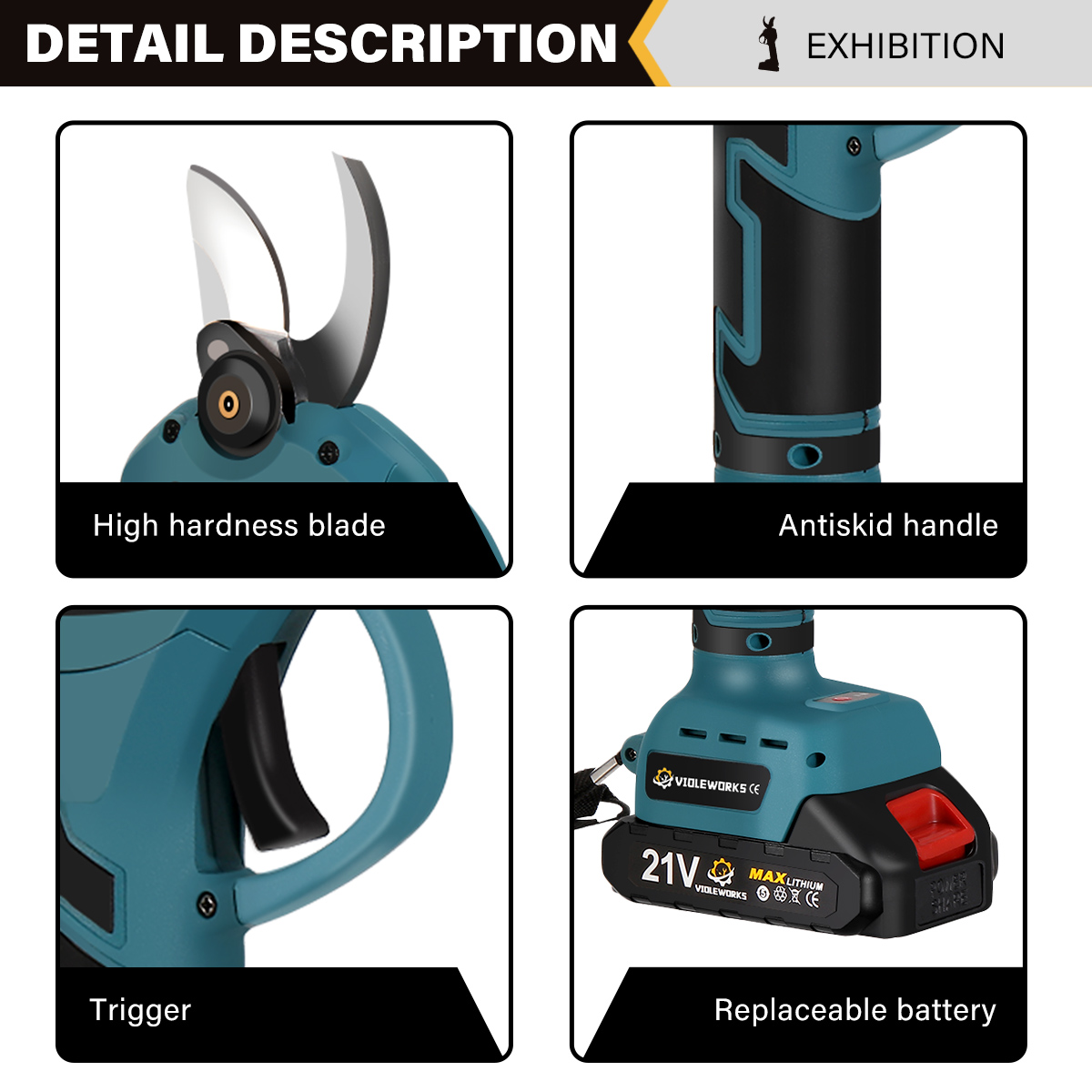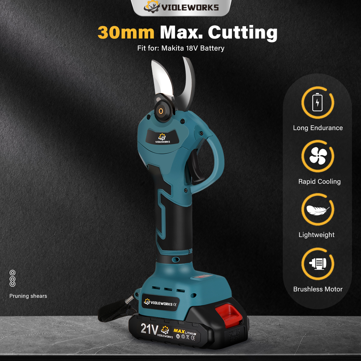 VIOLEWORKS 21V oksasakset 1500mAh akku harjaton moottori laturi sininen musta kotelo 30 mm aukko