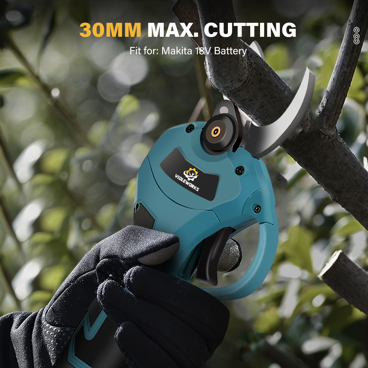 [Tehokas harjaton moottori] VIOLEWORKS 21V Brushless Pruning Shears -oksasaksissa on tehokas harjaton moottori, joka tarjoaa tasaisen ja tarkan leikkuuvoiman. 30mm leikkuuaukko mahdollistaa paksujenkin oksien ja varsien katkaisun vaivattomasti.
