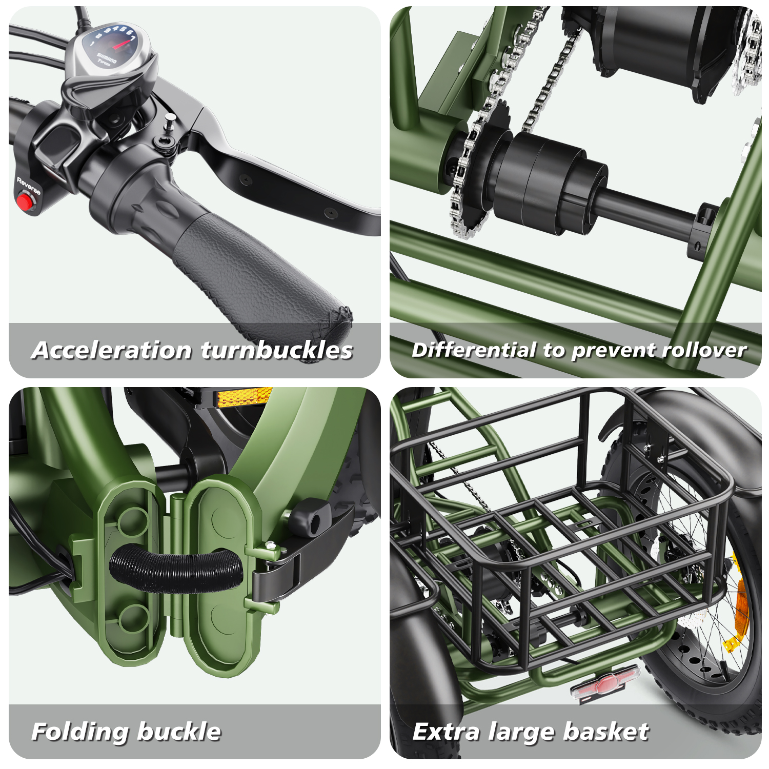 GOGOBEST GF100 sähköinen kolmipyörä 36V 15Ah 350W moottori 25km/h 70km toimintamatka 200kg kantavuus
