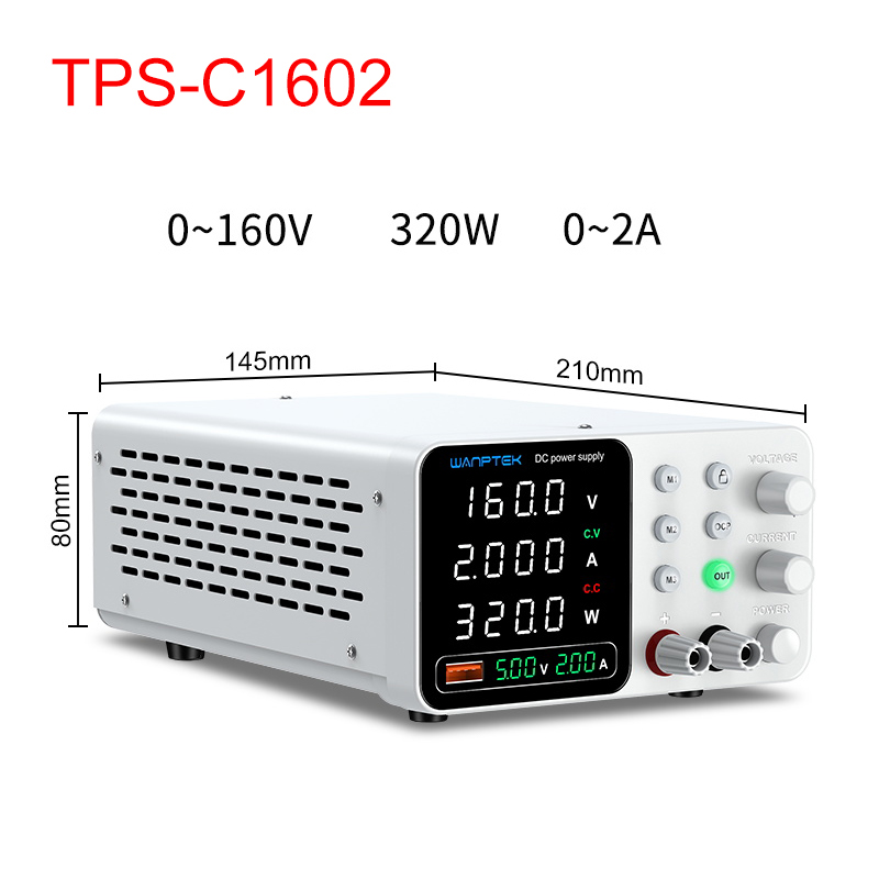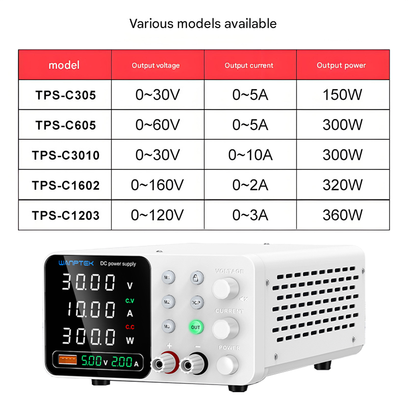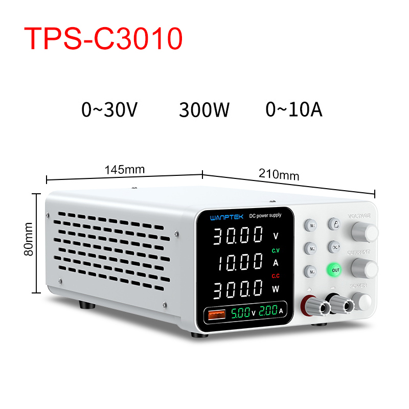 WAMPTEK säädettävä tasavirtalähde TPS-C3010 0–30V 0–10A 300W USB-pikalataus ylivirtasuojaus