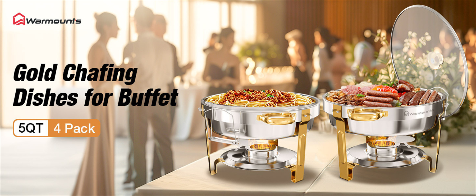 WARMOUNTS kulta buffet-lämmityssarja 2/4/6 kpl 5QT pyöreä haudeastia lasikannella
