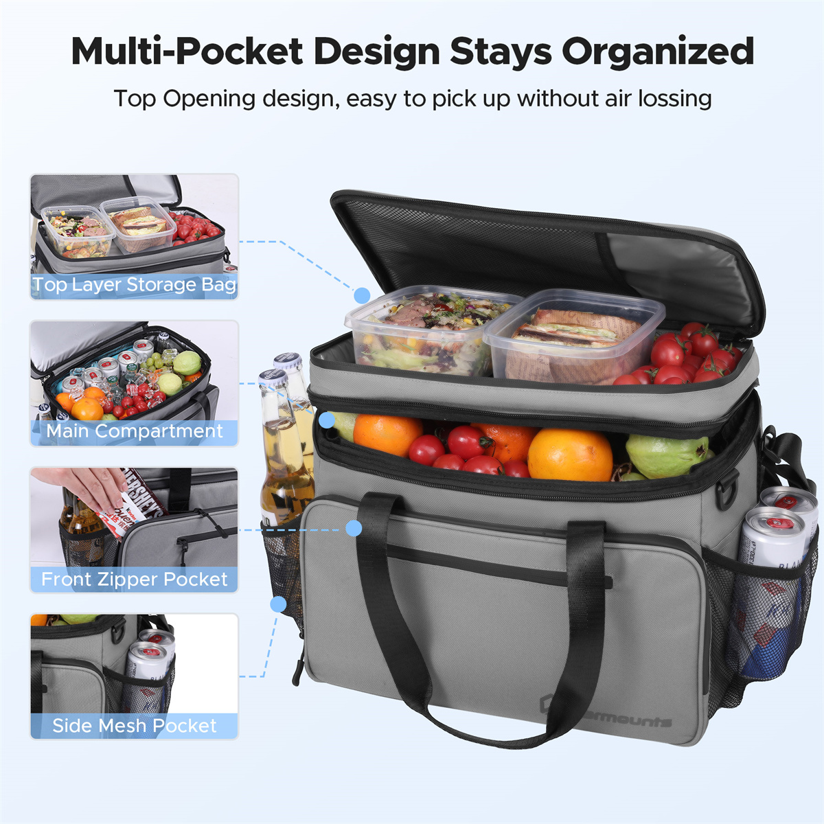 WARMOUNTS kylmälaukku on tilava ja käytännöllinen ratkaisu retkille, rannalle, kalareissuille ja perheen yhteisille ulkoilupäiville. 5-kerroksinen eristysrakenne ja erillinen eristekansi auttavat pitämään juomat ja ruoat viileinä jopa 20 tuntia.