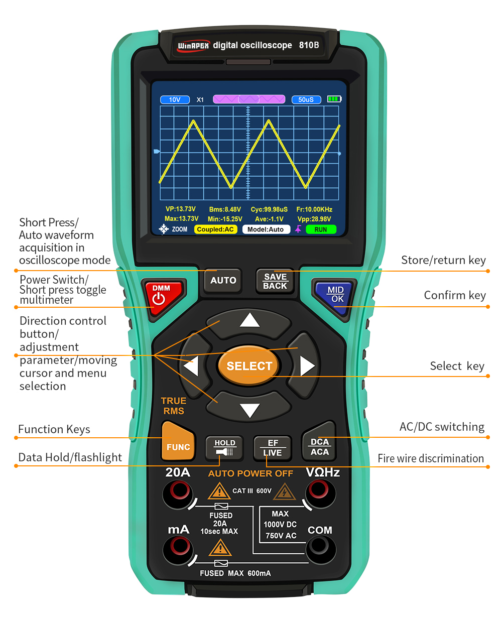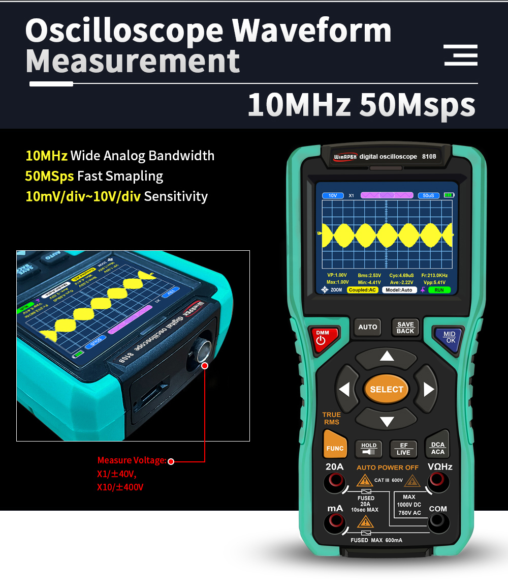 Suurin mitattava jännite: ±40V (X1), ±400V (X10)