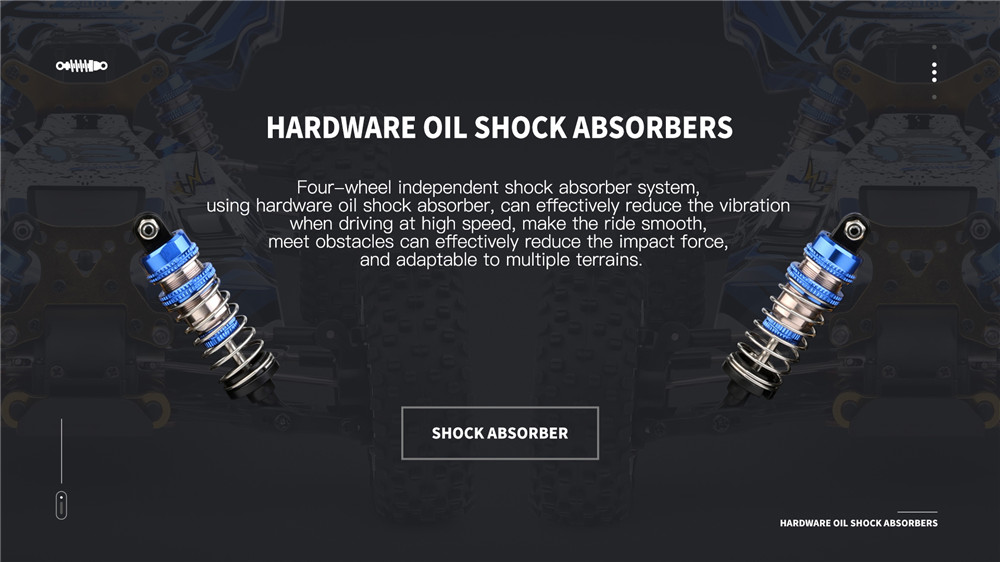 - Öljytäytteiset iskunvaimentimet soveltuvat useille eri alustoille ja maastoille.