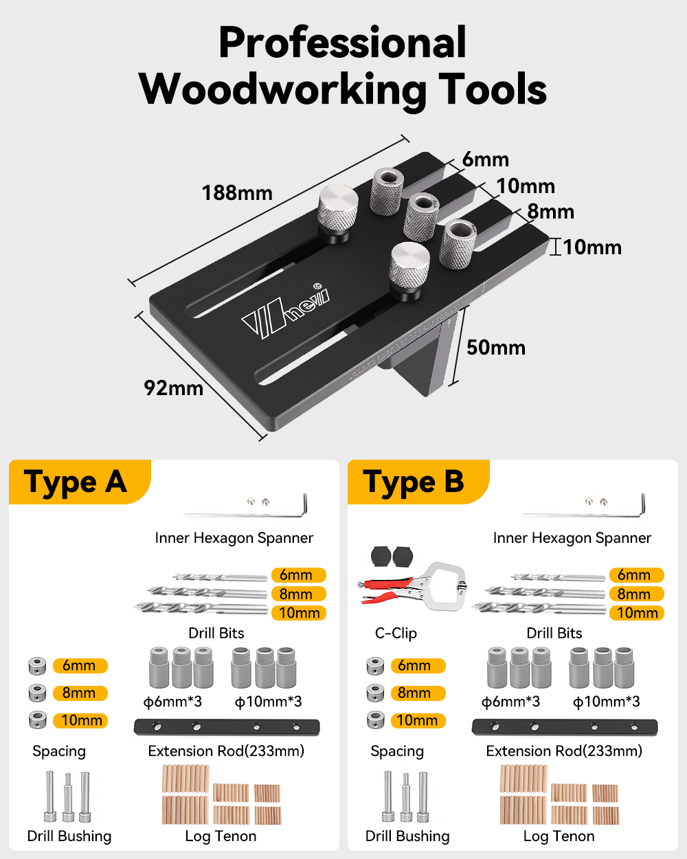 Korkealaatuinen materiaali: Valmistettu alumiinista ja ruostumattomasta teräksestä. Kestävä musta rei’itin soveltuu erinomaisesti puutöihin.
