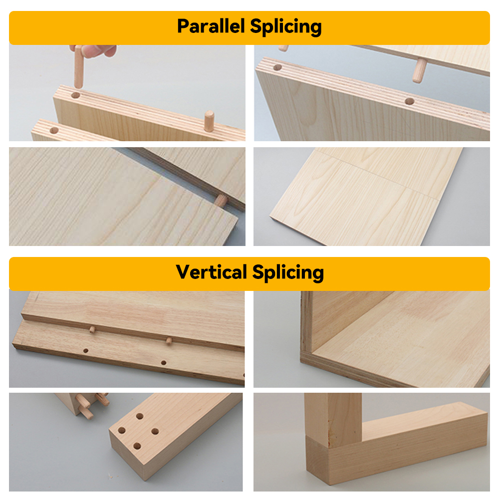 Pyörötappiliitokset: Puutyökalu mahdollistaa tarkkojen reikien poraamisen ja pyörötappien käytön levyjen liittämisessä.