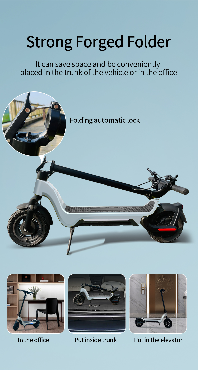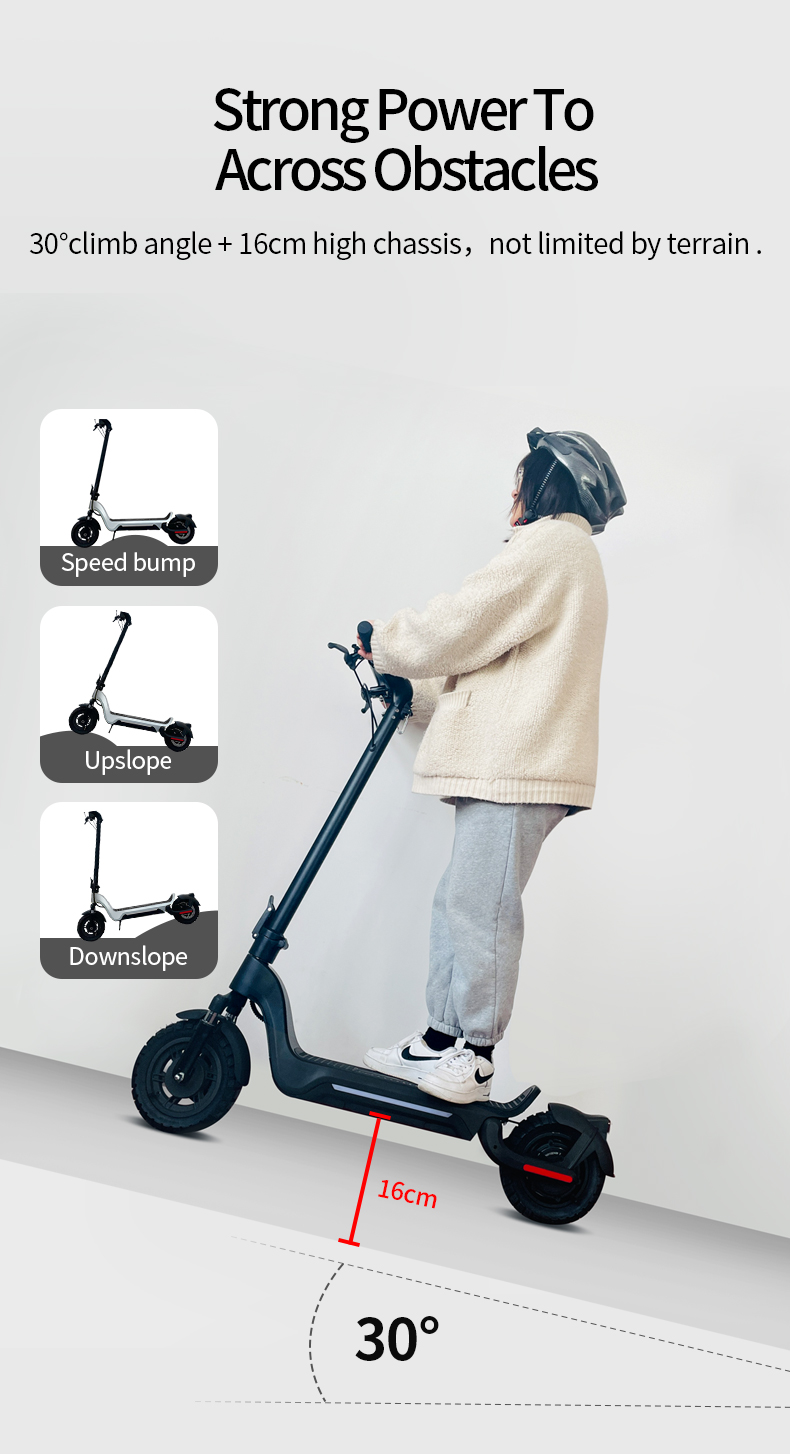 Monipuolinen, kokoontaitettava sähköpotkulauta päivittäiseen kaupunkiajoon ja hiekkateille. Tehokas 48V 600W takamoottori, 10-tuumaiset maastorenkaat ja etu- sekä takajousitus tekevät ajosta vakaata ja mukavaa myös epätasaisilla alustoilla.