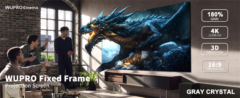Wupro Cinema kiinteäkehyksinen harmaa kristallinäyttö kotiteatteri 16:9 4K 3D 92–130 tuumaa