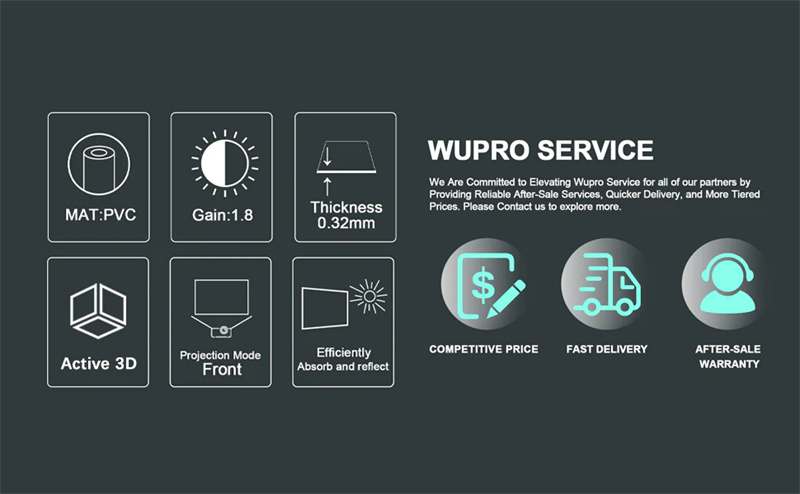 Wupro Cinema kiinteäkehyksinen harmaa kristallinäyttö kotiteatteri 16:9 4K 3D 92–130 tuumaa