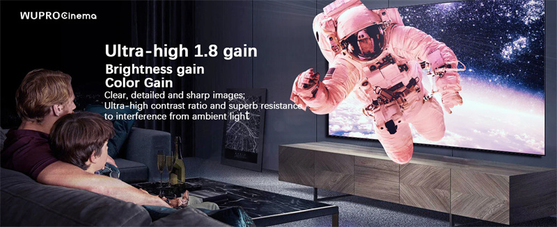 Wupro Cinema kiinteäkehysinen musta kristallivalkokangas 4K 160° 10 mm ohut kehys 92–130 tuumaa