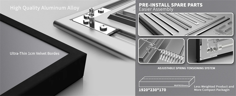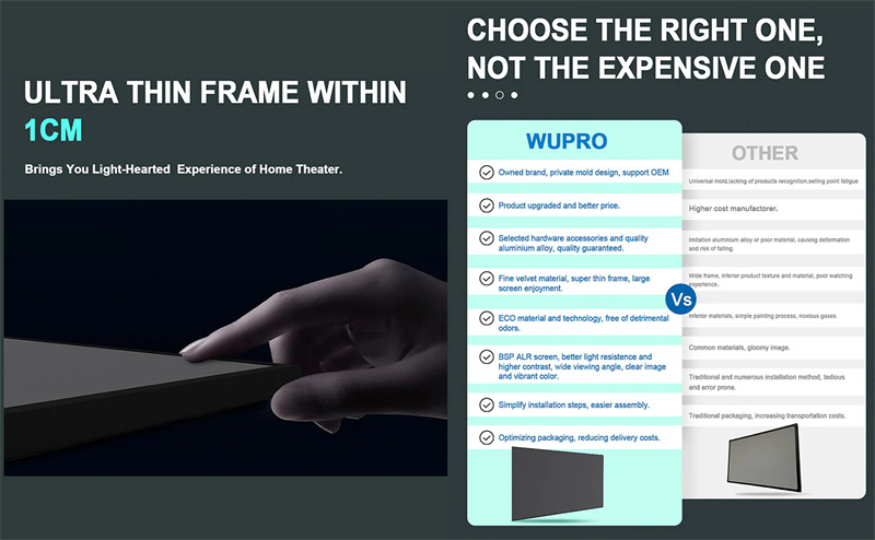 Wupro Cinema kiinteäkehysinen musta kristallivalkokangas 4K 160° 10 mm ohut kehys 92–130 tuumaa