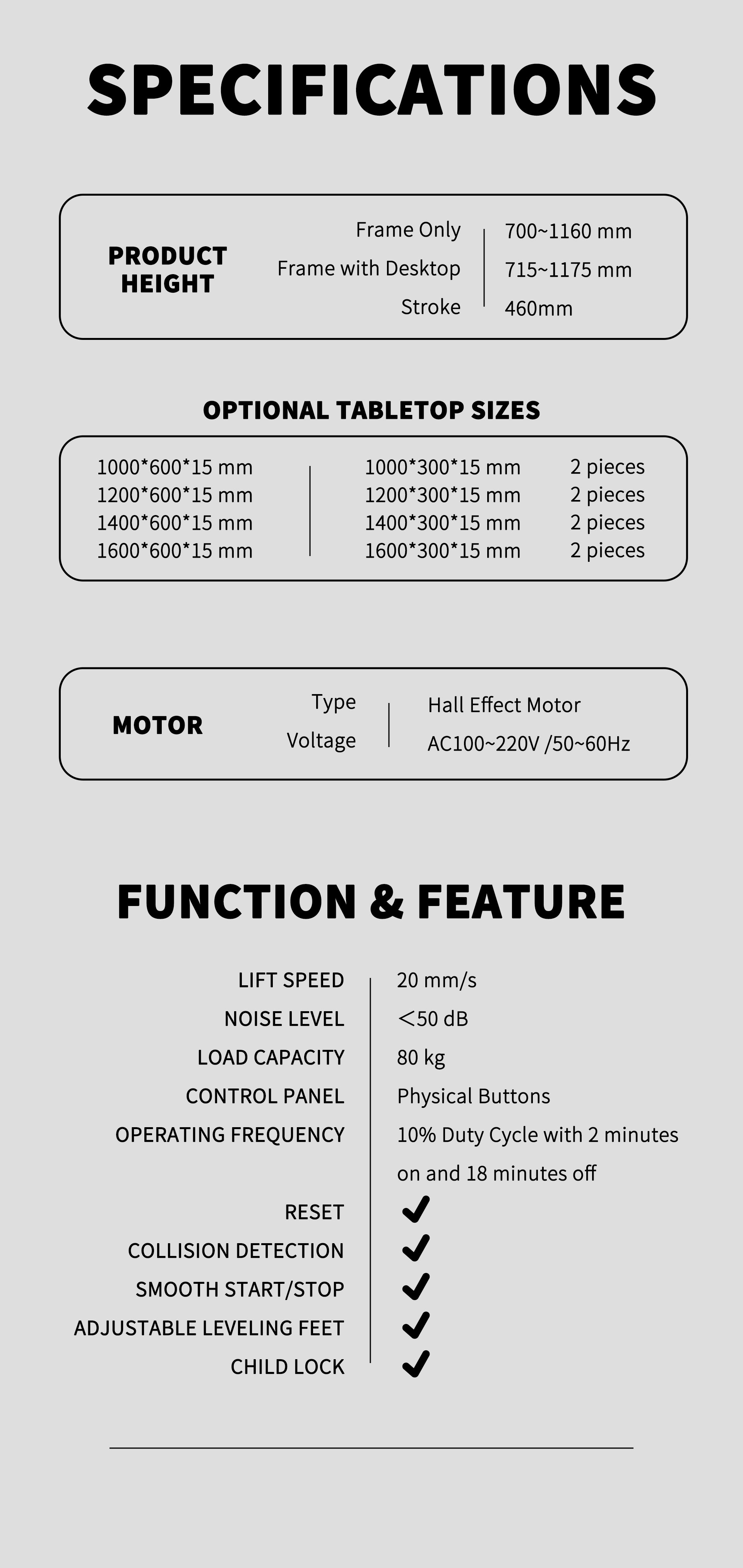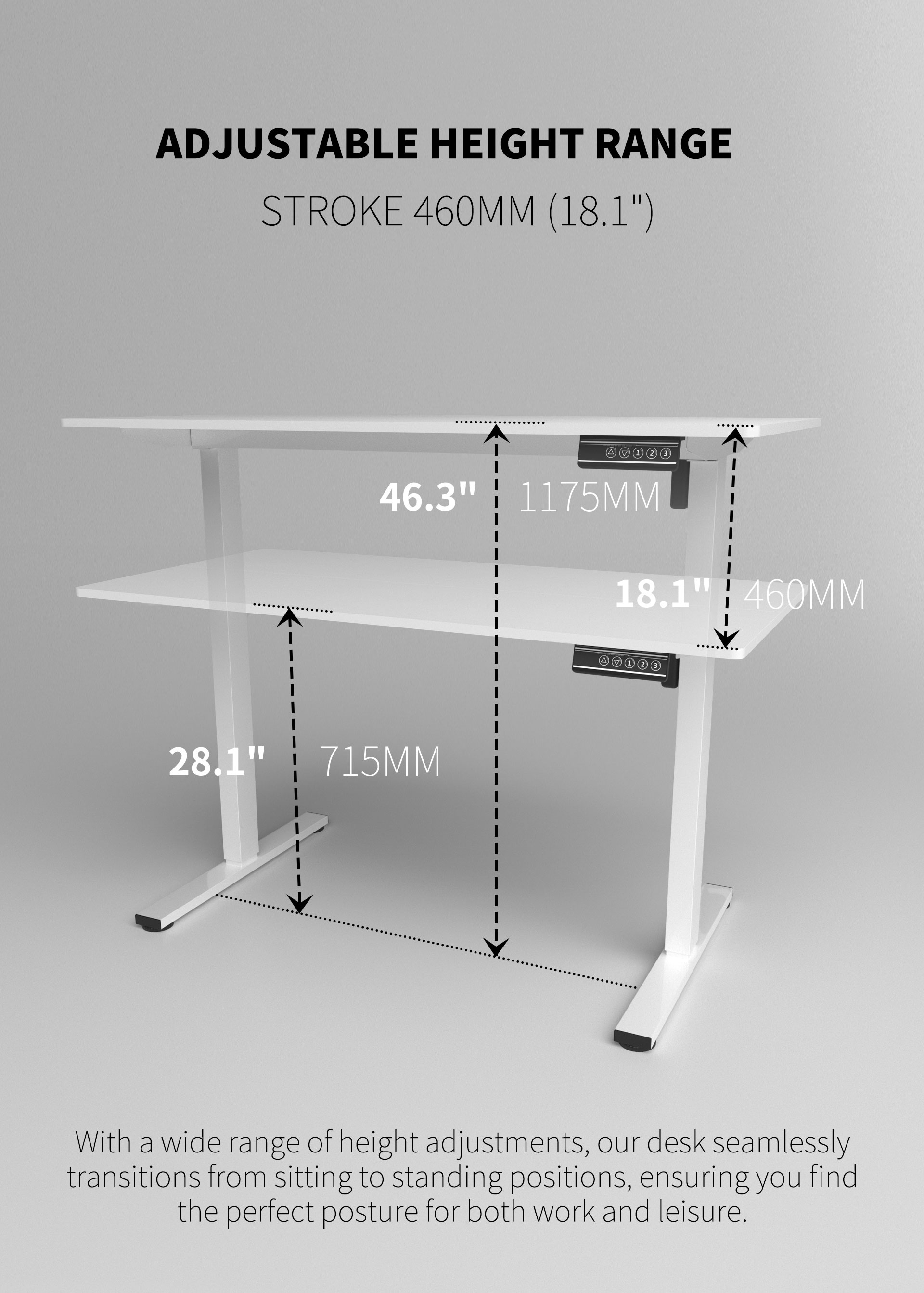 WUPRO sähköinen seisomapöytä hall-anturimoottori säädettävä korkeus 80 kg kantavuus