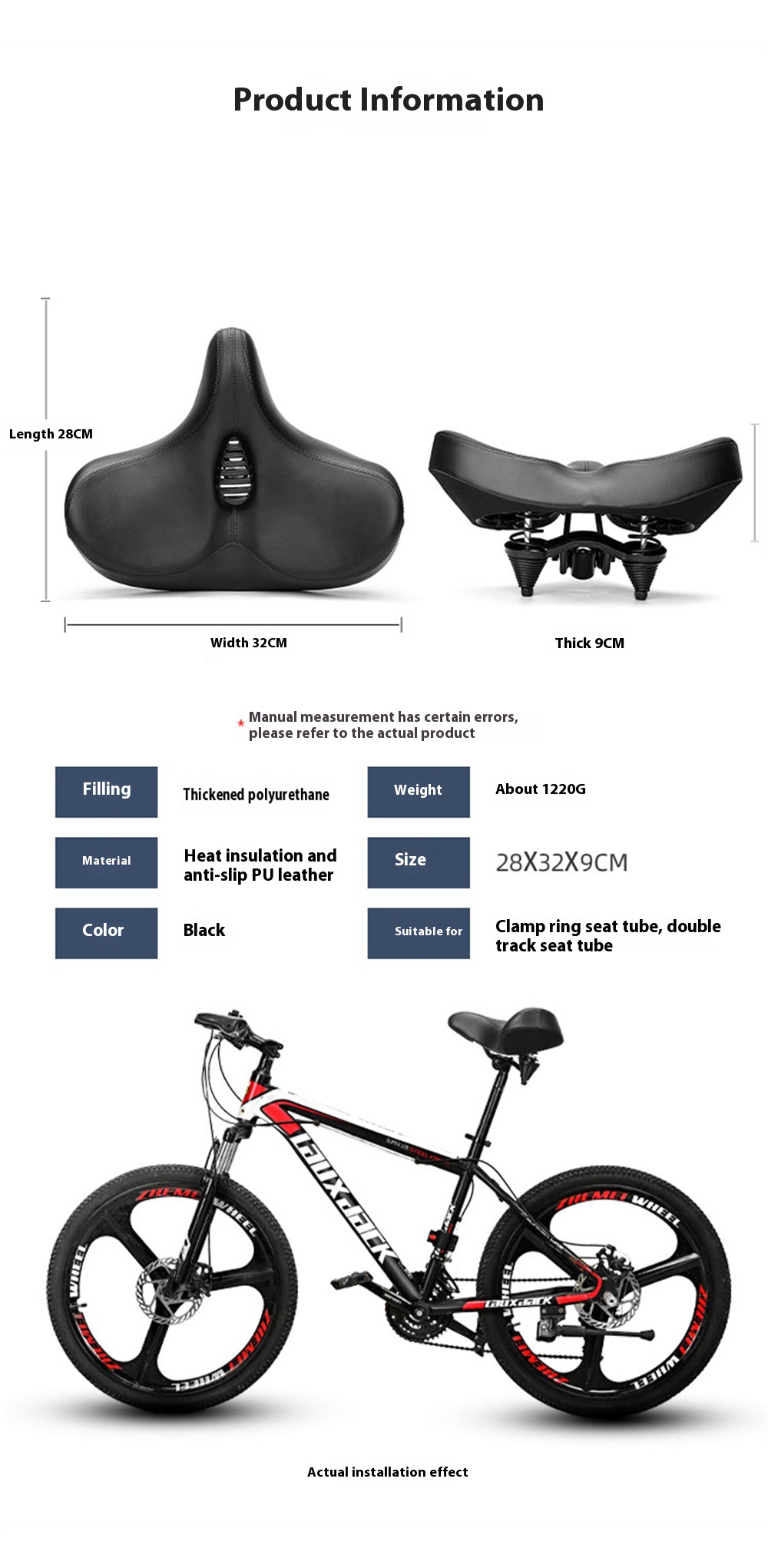 XANES leveä PU-nahkainen ylimitoitettu polkupyörän satula geelipehmusteella