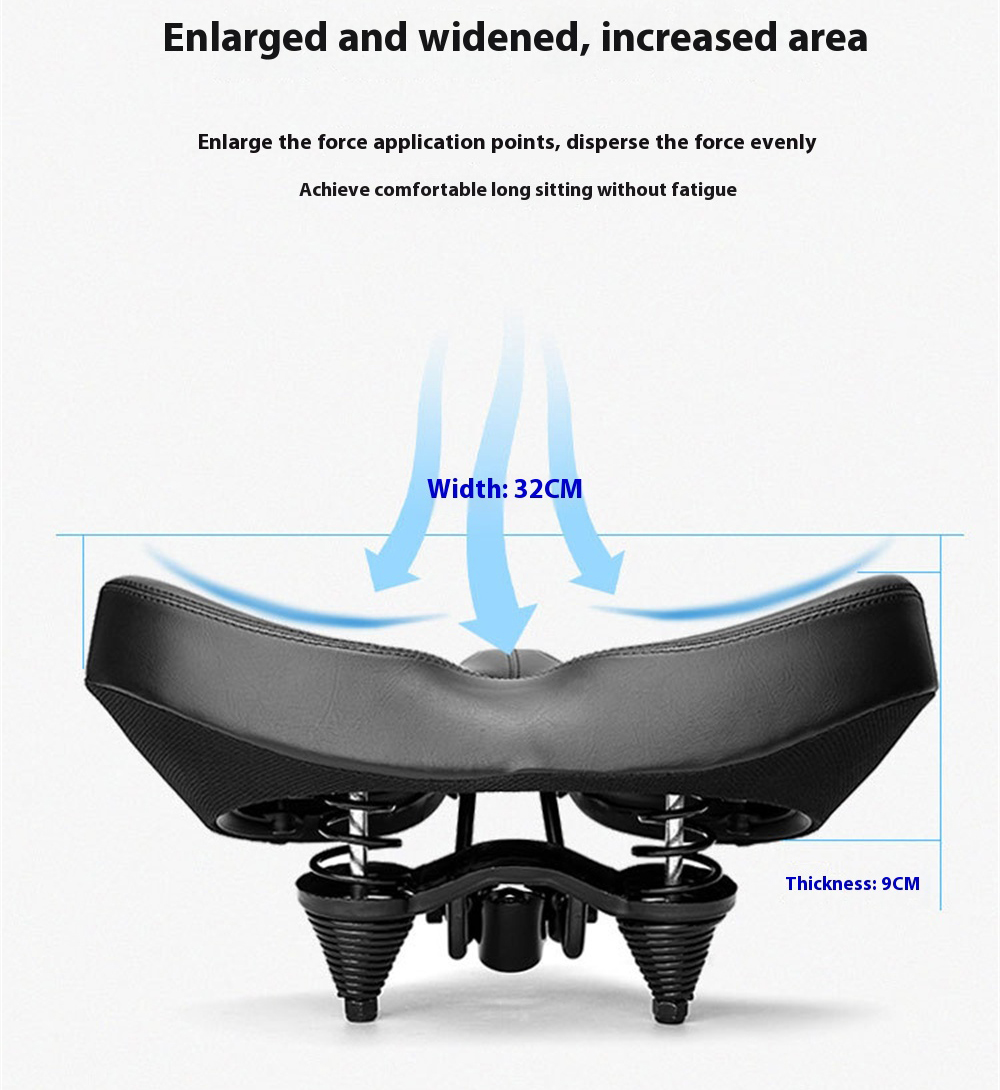 1. 32 cm:n extraleveä satula jakaa paineen tasaisesti ja vähentää arkuutta pidemmilläkin matkoilla.