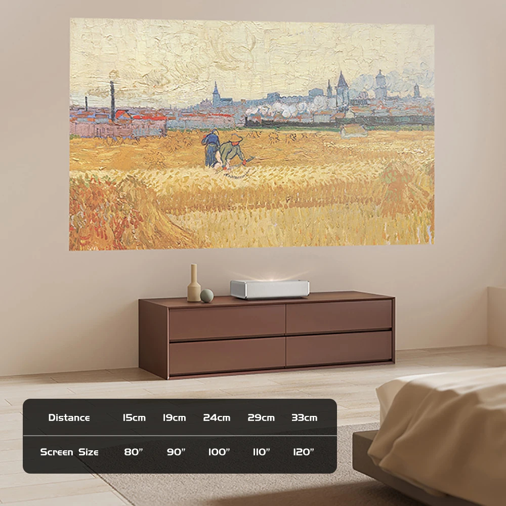 1. Ultralyhyt heittomatka: 100-tuumainen kuva vain 24 cm etäisyydeltä seinästä.