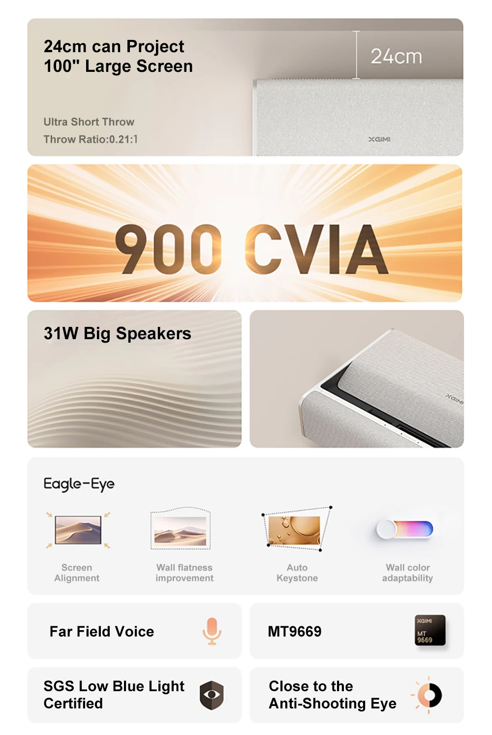 XGIMI M1 UST erittäin lyhyt heitto 900 lumenia 4K-tuki automaattinen trapetsikorjaus kotiteatteri