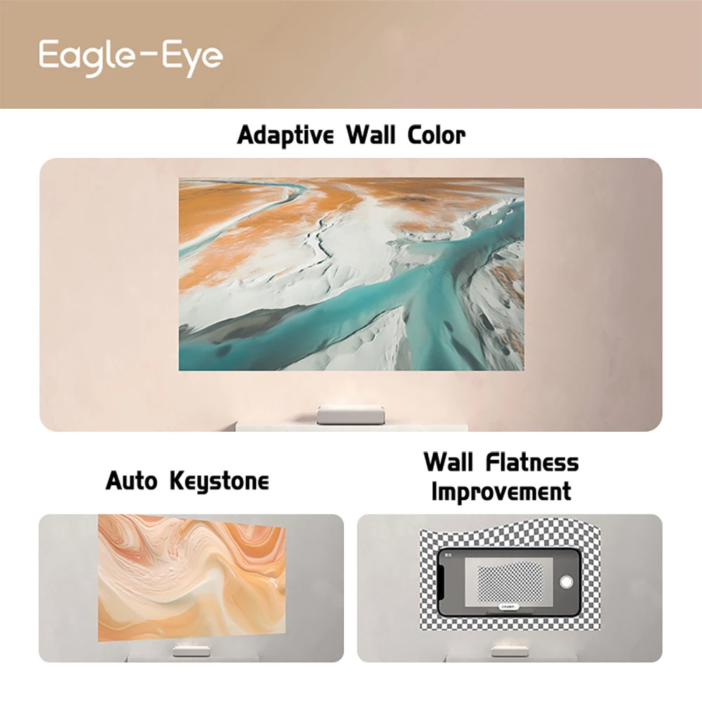 3. Helppo kohdistus: automaattinen trapetsikorjaus ja seinän tasaisuuden mukautus sujuvaan käyttöönottoon.