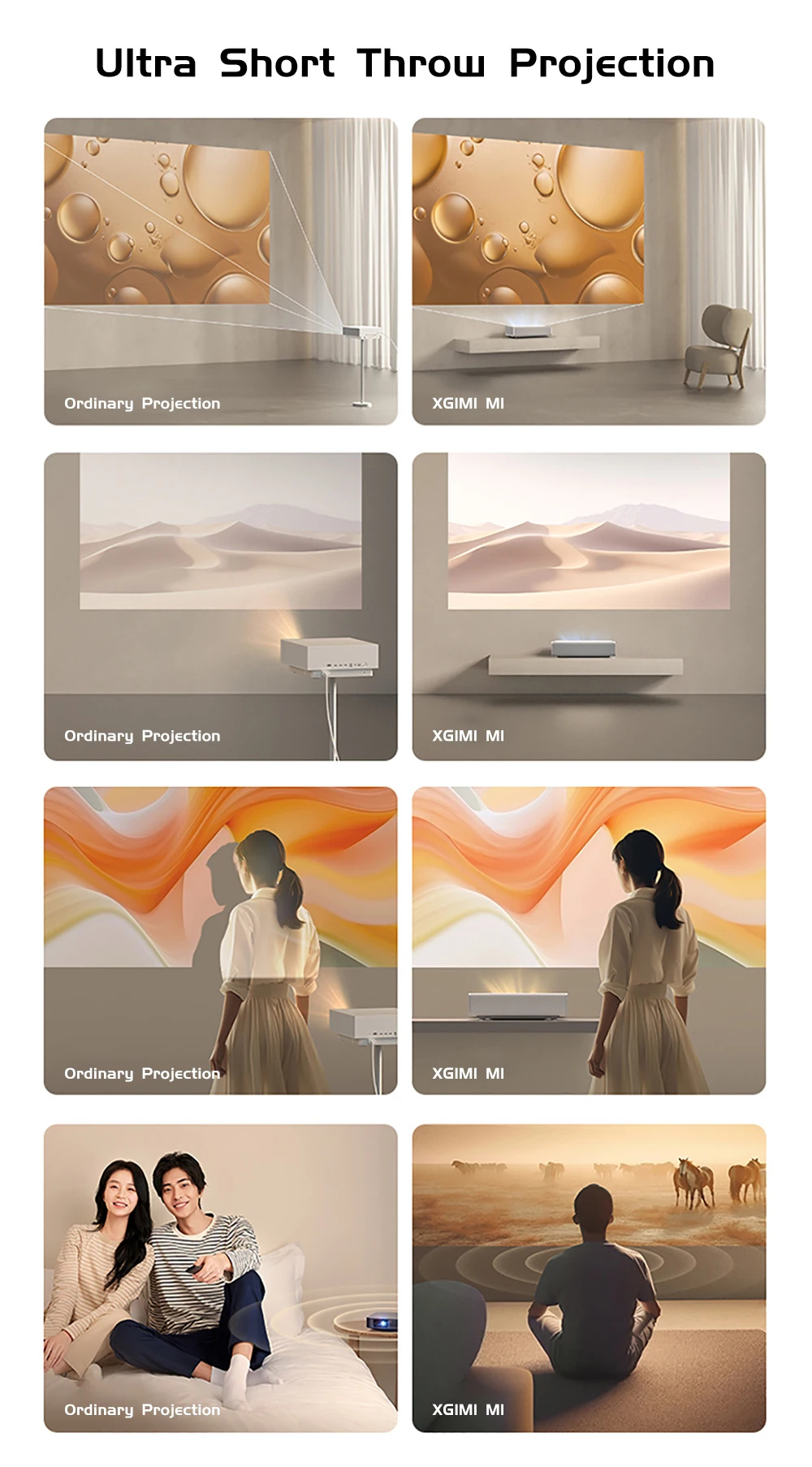 Anna kotiteatterilleen suuri kuva pienestä tilasta. XGIMI M1 UST tuottaa 100-tuumaisen kuvan vain 24 cm etäisyydeltä ja yhdistää selkeän kuvan, helpon käyttöönoton ja vahvan äänen yhteen laitteeseen.