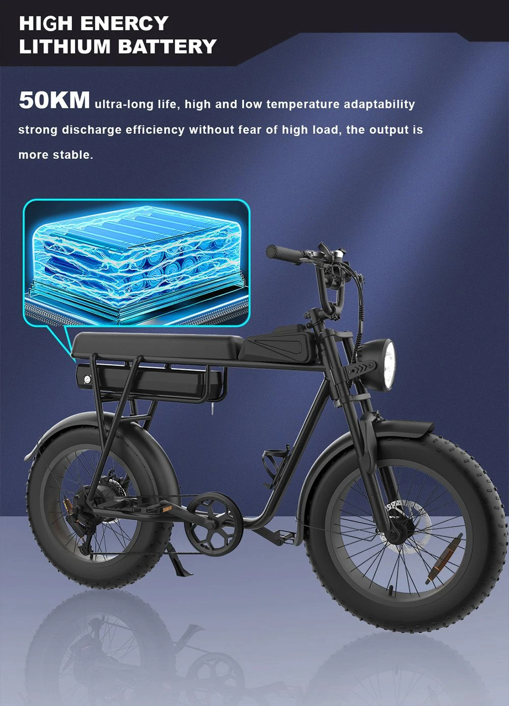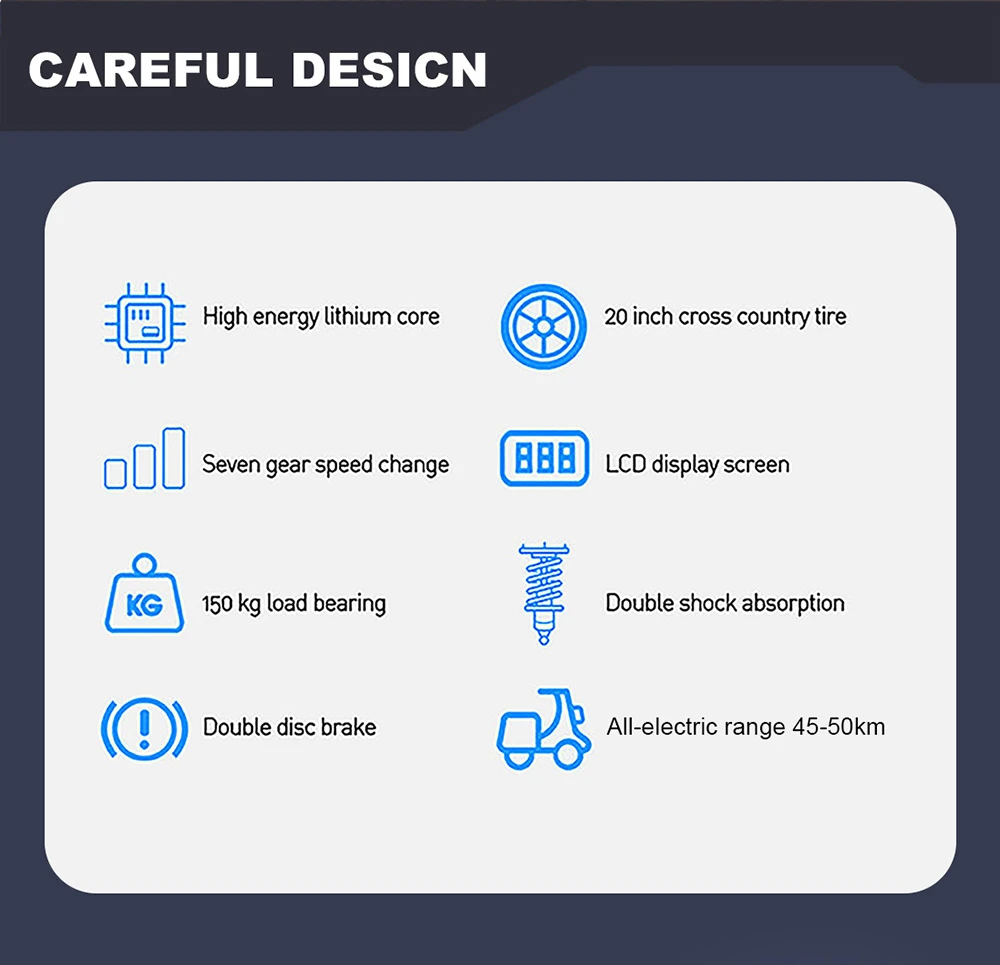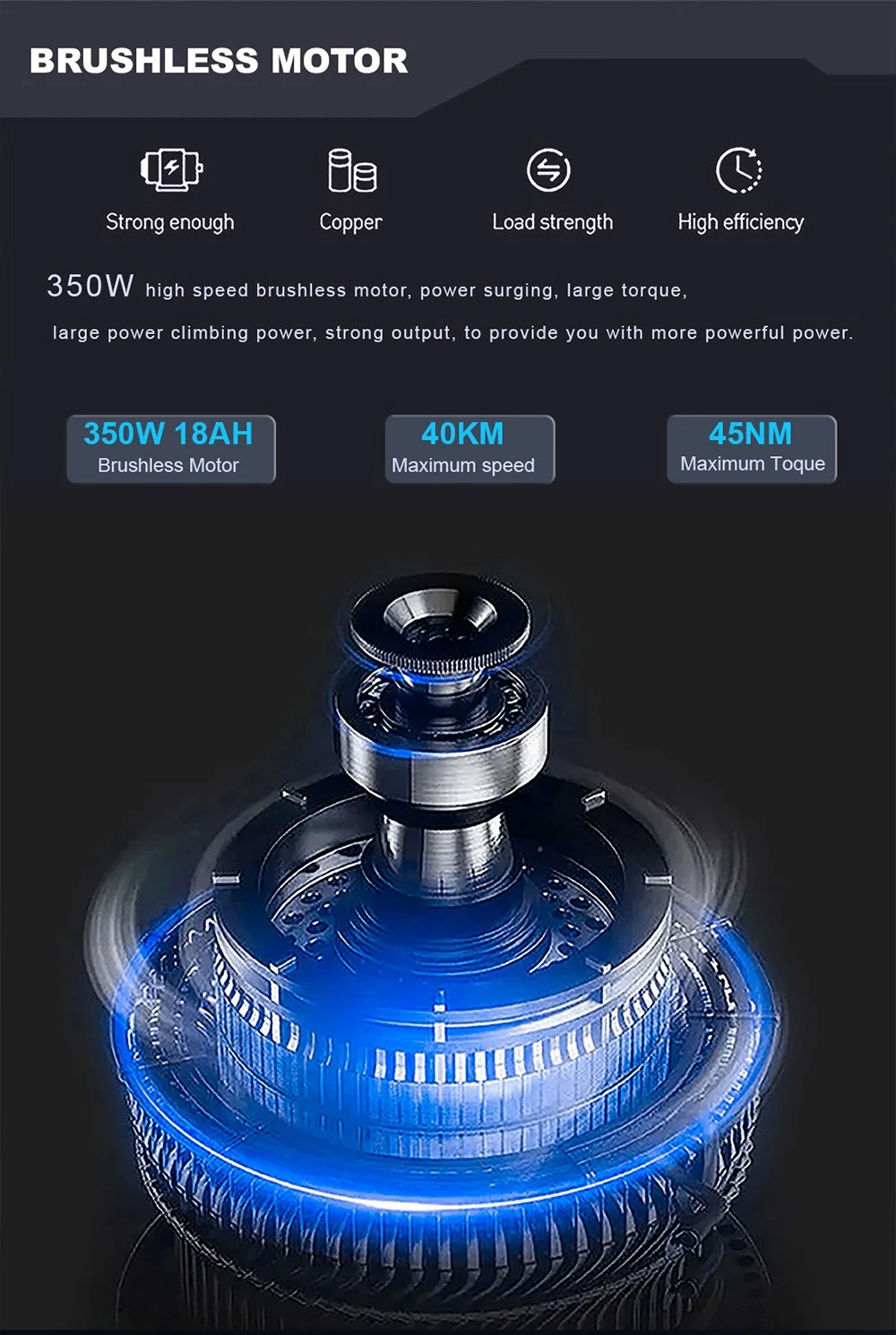 - 48V 350W -sähkömoottori, huippunopeus jopa 50KM/H
