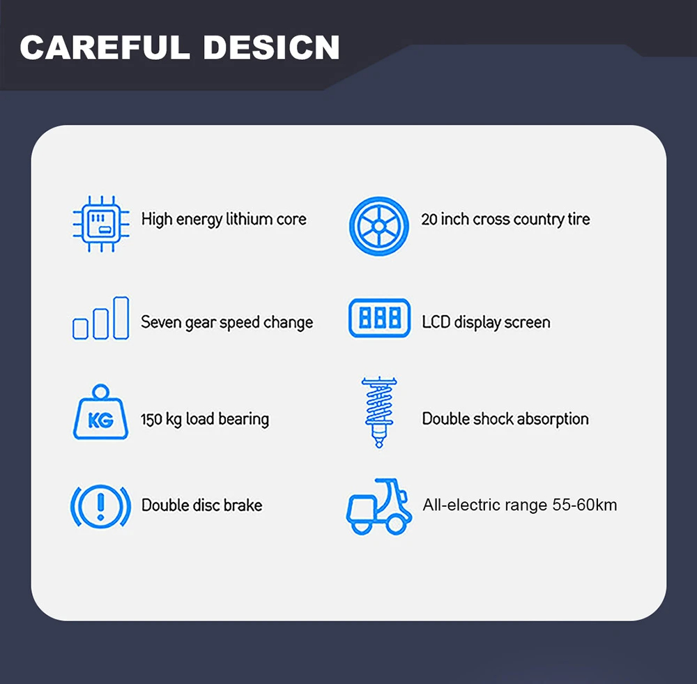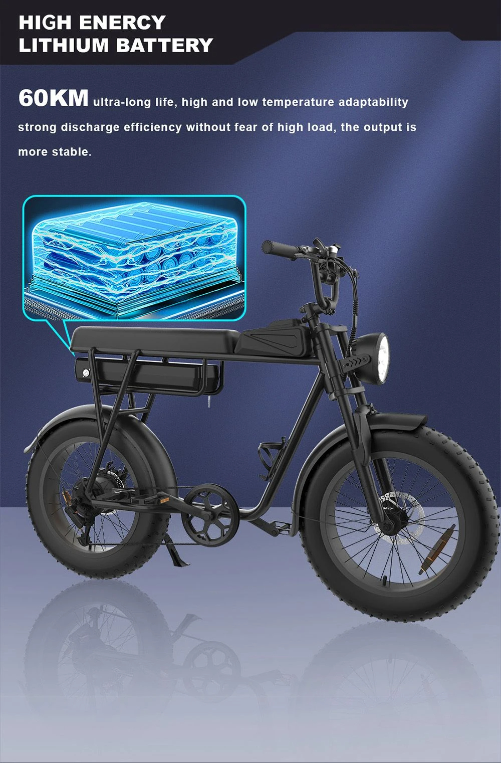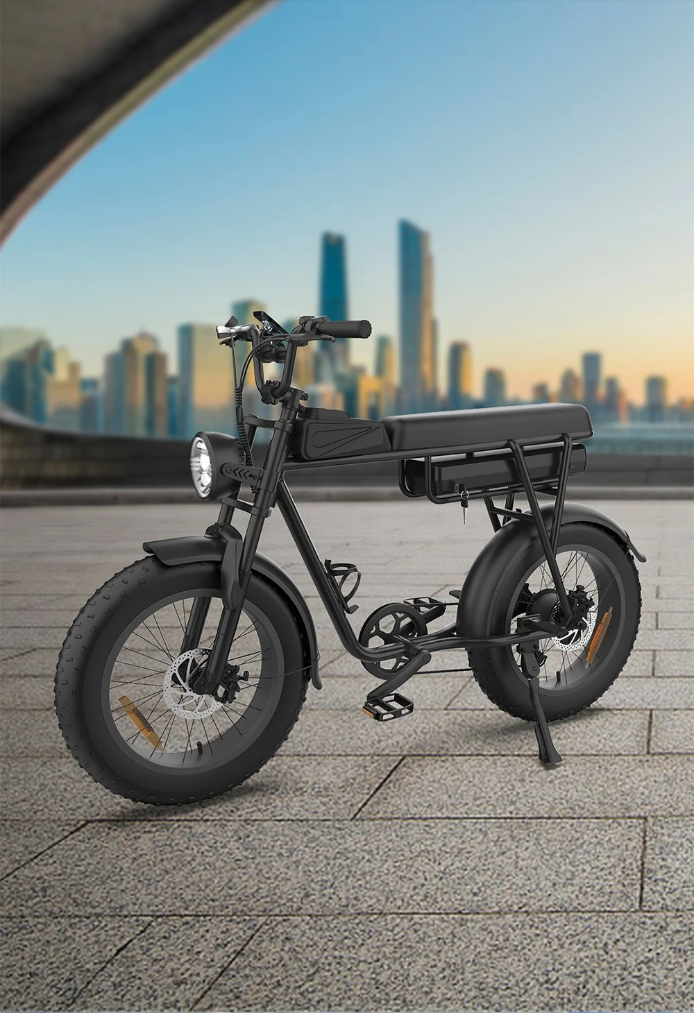 - 48V 1000W -moottori tarjoaa ripeän kiihtyvyyden ja jopa 50KM/H huippunopeuden