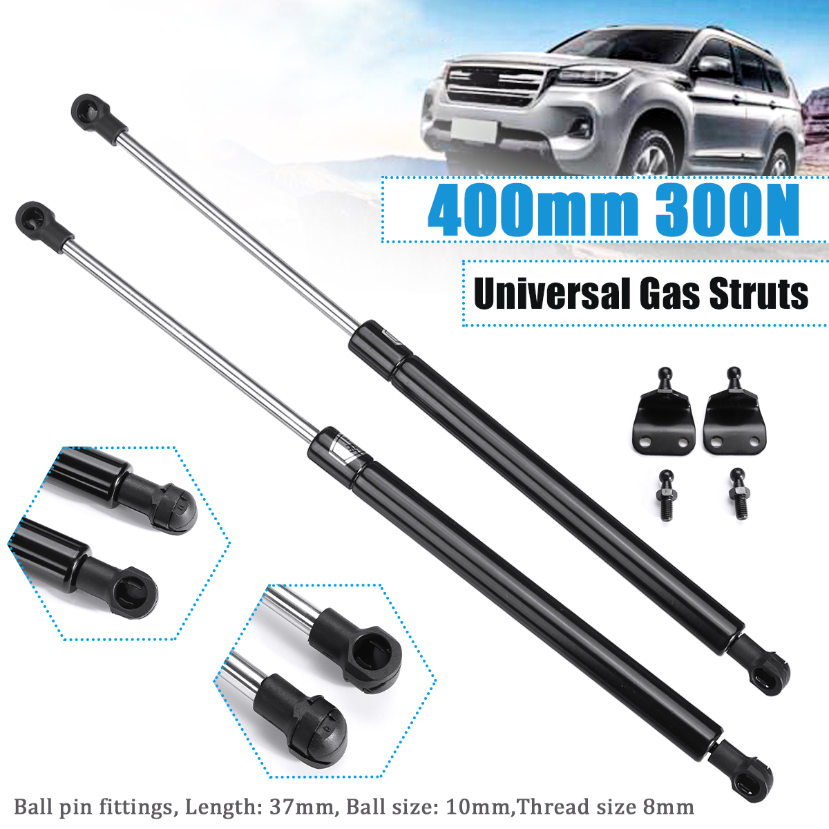Yleiskäyttöiset 400 mm 300 N kaasujousipari konepellin ja takaluukun tuki D52662